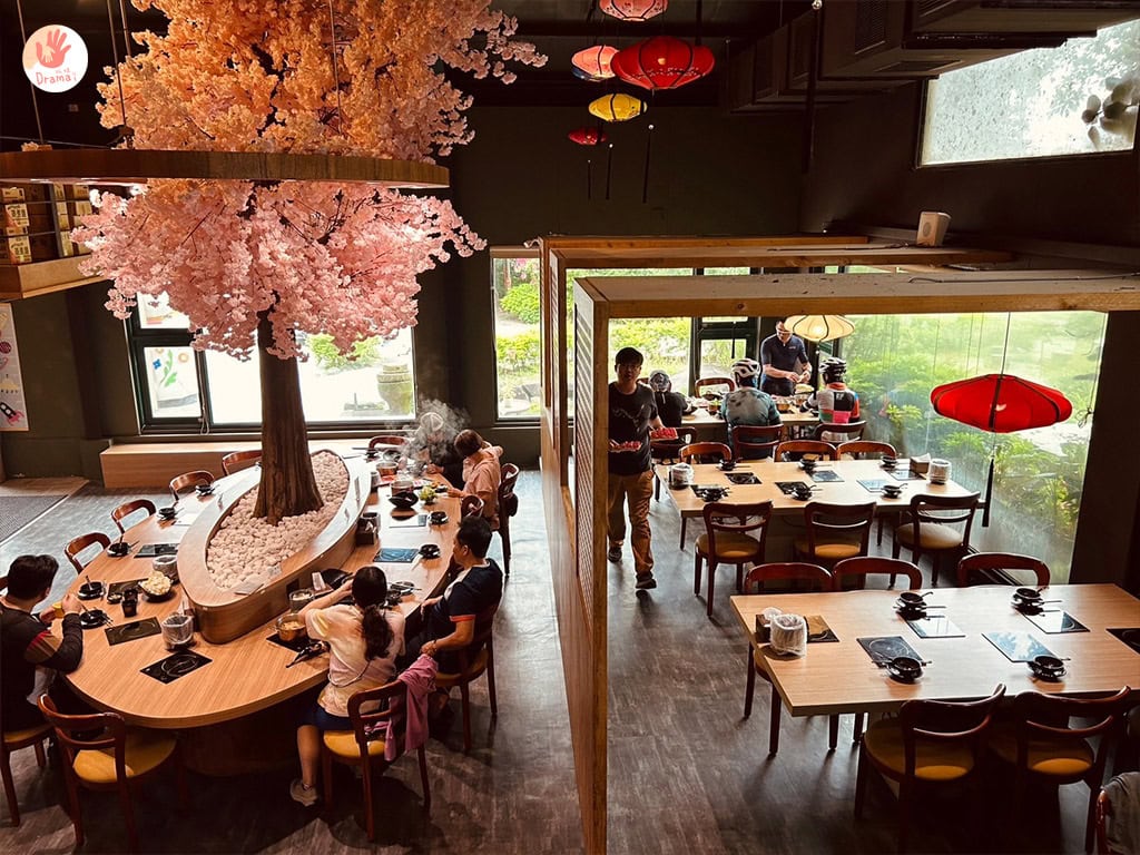 [魚路小棧精緻鍋物]以日式櫻木樹的原木空間設計,一走入室內就覺得優雅迷人,很難想像是一間火鍋店,有一種燒肉店的氣氛